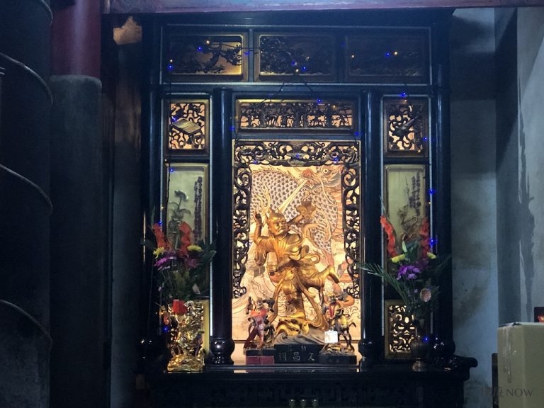 魁星爺。(圖/記者連宜方攝)下週三(7日)為農曆七月七日魁星爺誕辰,考生在這天可以祭拜魁星爺以祈取考運亨通,一般上班族也可祭拜魁星爺以求事業順利。水果可準備:橘子(柑)、梨子(來)、金桔(結)、蘋果(果),用台語念即是「甘來結果」,意即會有好的結果。