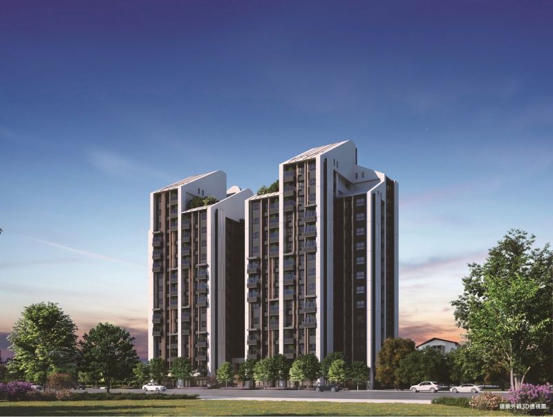 建築平面採「風車型配置」設計,顧名思義即建築平面如風車造型展開,住宅每一戶增加採光面,戶戶室內維持妥適的自然光感,室內通風也更加良好。「錯層陽台」則是植入綠意增加建築綠美化,從外觀來看,建築不再是過去冰冷的樣態,而是形塑出仿生大自然樹群的意像,成為生意盎然的有機體。最後是斜屋頂造型,不僅功能上兼具美學、遮陽、透光三大價值,從城市的角度而言,也希望藉由品牌建商在建築上的投注,將全球掀起的綠建築風潮帶進台南。