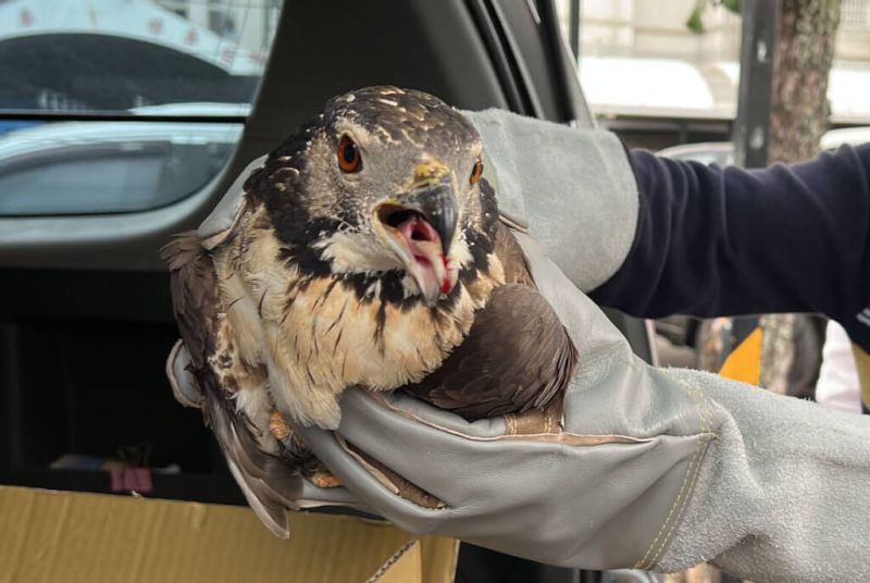 今天下午林女經同路段同地點,又發現1隻東方蜂鷹坐在馬路上,神情緊張,便趕緊通知農業處。