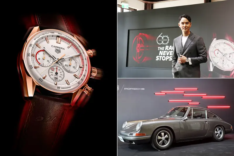 TAG Heuer泰格豪雅與Porsche保時捷再度攜手推出TAG Heuer Carrera Chronosprint x Porsche 計時腕錶,記者會現場展出1970年代的Porsche 911,並邀請身為Porsche車主、也曾經是賽車手的藝人阮經天擔任活動嘉賓。