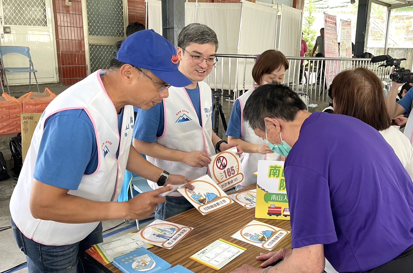 南山人壽 南山人壽致力推廣失智友善,董事長尹崇堯(左二)、總經理范文偉也會安排時間,參與南山人壽慈善基金會的「原鄉關懷列車」活動,透過趣味化的闖關遊戲,與民眾互動,幫助長輩促進大腦健康及延緩失智退化的可能。(圖/南山人壽提供)