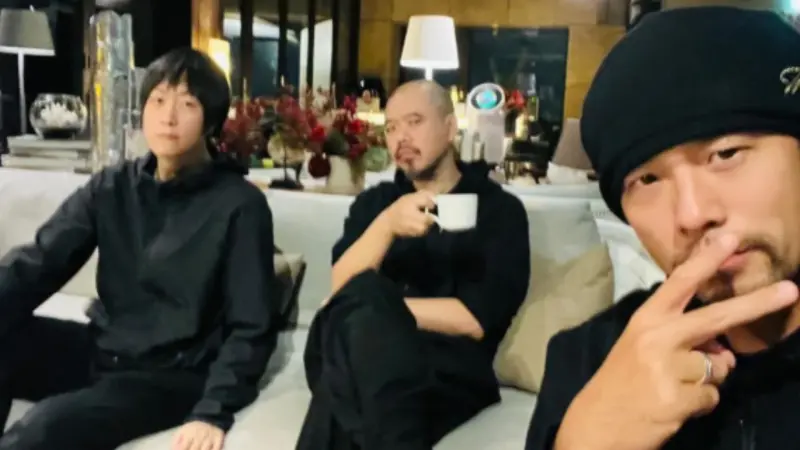 周杰倫曬出與阿信、陳奕仁(阿木)導演一起聚會合照,畫面中阿信沒戴口罩、身穿一身黑,以順毛造型示人,一旁的導演陳奕仁也同樣穿著黑衣黑褲,手持白色杯子翹腿入鏡,看起來相當輕鬆自在,而周杰倫則是帥氣比出YA手勢。