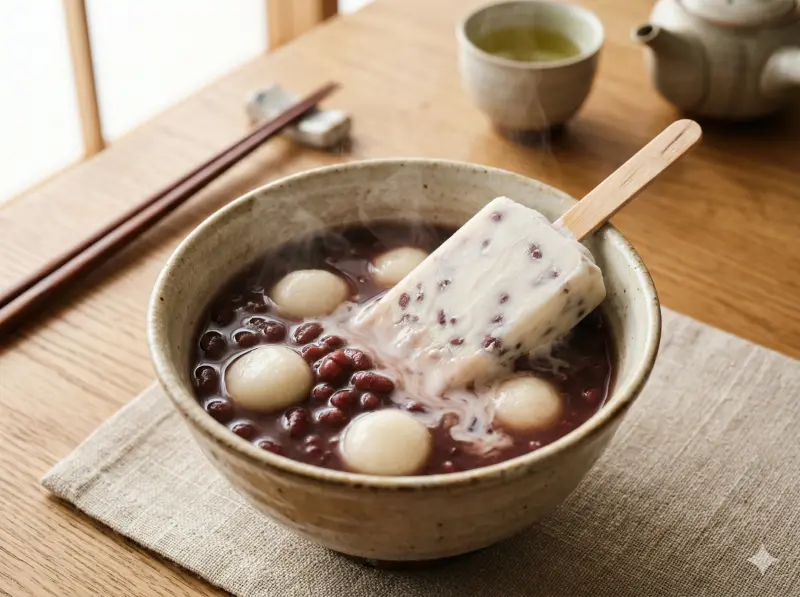 ▲網紅黑木太太分享將紅豆牛奶冰棒與包餡湯圓微波混合,超強創意瞬間升級為神級「日式紅豆麻糬湯」,引發網友熱議。(示意圖/由 AI 生成/NOWNEWS監製)