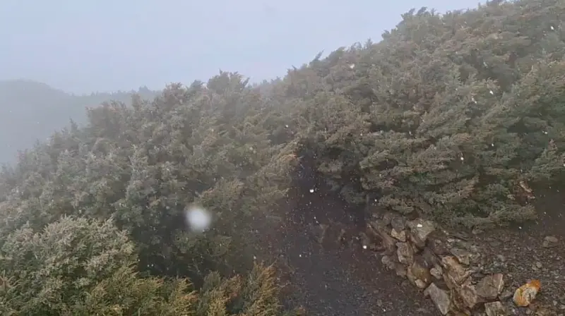 而玉山氣象站中清晨以及午11時50分至12時50分出現降雪,不過目前無積雪。