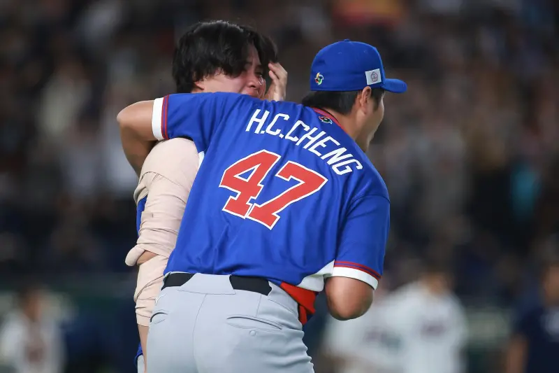 中華隊征戰WBC世界棒球經典賽,歷經延長賽10局,5:4驚險擊敗韓國,贏球瞬間轉播畫面其中一個視角,拍攝到中華隊球員衝上場慶祝,本場也有登板的21歲年輕小將孫易磊,壓力釋放跪地痛哭,一旁的學長鄭浩均看到後獻上擁抱,隨後扶著他一起跑上球場,成為昨天場邊最暖心一幕,影片在Threads上瘋傳,3.5萬位球迷都感動地說,「每個旅外的人都很孤獨,和自己人一起贏球還是不一樣!」、「一度以為要公主抱」