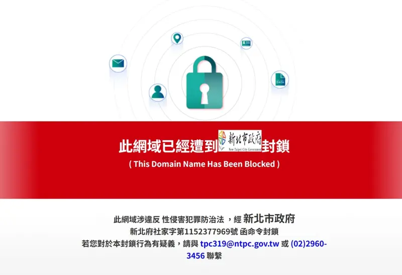 實際點進MissAV網站,畫面會跳出封鎖圖示,且強調此網域已經遭到新北市政府封鎖,公告內容則說明:「此網域涉違反《性侵害犯罪防治法》,經新北市政府新北府社家字第1152377969號函命令封鎖」。