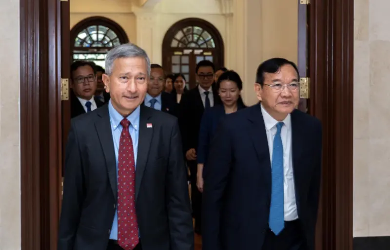 應新加坡外交部長維文(Dr. Vivian Balakrishnan)邀請,柬埔寨副總理兼外交與國際合作部長布拉索昆(Prak Sokhonn)於3月10日至11日訪問新加坡。雙方在會談中回顧多年來的合作成果,並同意未來在人力資源培訓、綠色能源與數位經濟等領域加強對接。新加坡長期作為柬埔寨主要外資來源,其投資分布表現為從房地產、物流延伸至先進基礎建設的多元佈局。