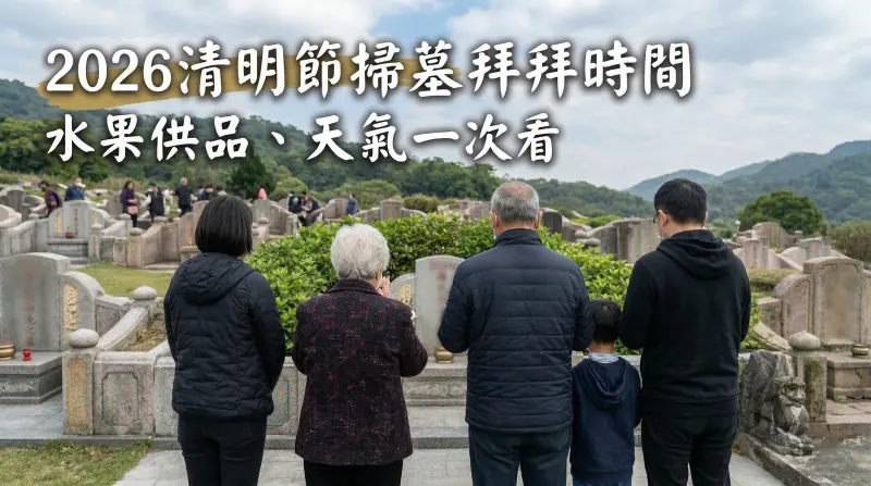 2026清明節即將到來,今年清明節是4月5日(周日),政府公布的清明節連續假期(4月3日至4月6日)共放4天。由於清明連假掃墓人潮擠爆,許多家族會提前在3月挑吉日祭祖分流。
