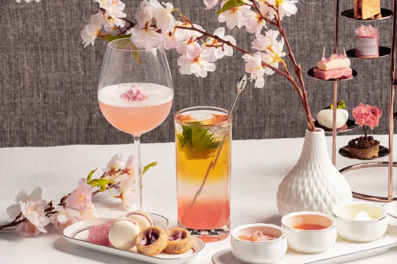 ▲ 憑「2026 高雄櫻花季音樂節」門票點購櫻花祭下午茶,即可免費兌換一杯櫻花主題特調。(圖/高雄洲際酒店提供)