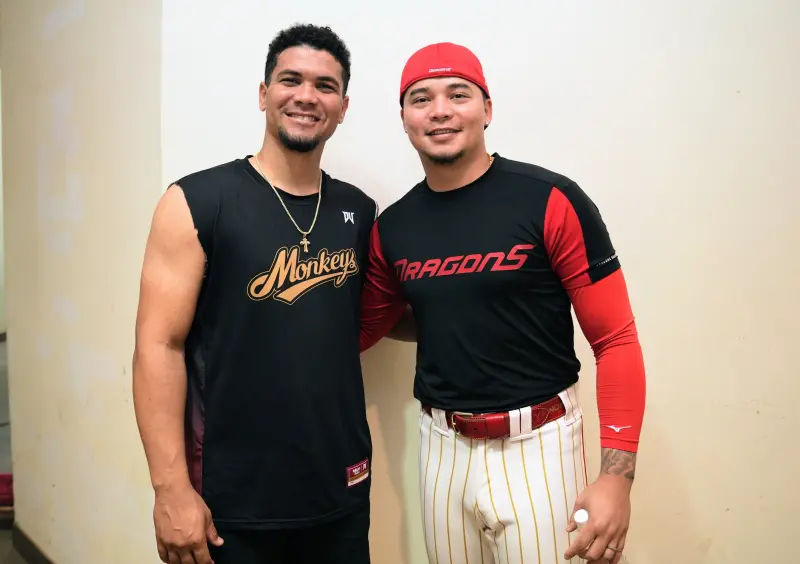 2026年第6屆WBC世界棒球經典賽(World Baseball Classic )中華隊賽事告一段落,味全龍後援投手林凱威也回到母隊,今日趁著官辦熱身賽的賽前空檔,找上樂天桃猿洋投威能帝(Pedro Fernandez),2人留下合照。近期不少球迷討論,2人宛如兄弟,威能帝也笑說知道此事,「下一次我可以幫台灣出賽,我們是兄弟。」