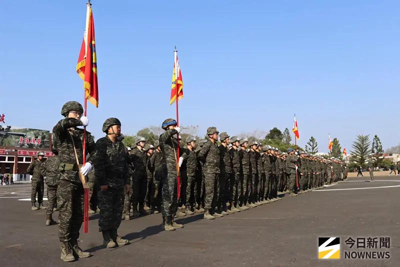 ▲上校指揮官余奎麟(右)主持授槍儀式,象徵新兵肩負守護家園使命。(圖/記者莊全成攝,2026.03.14)