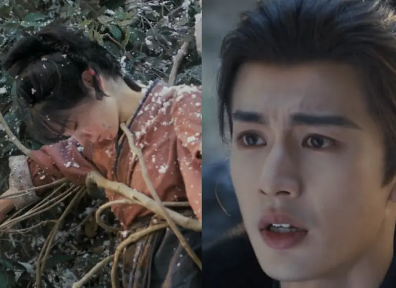 最後在山崖下發現田曦薇被樹枝捆綁著,已經昏迷凍僵,張凌赫的眼神充滿心疼與恨意,將田曦薇帶回家後,含淚抱著她,還替她脫衣刮痧,重逢畫面非常虐心。不僅如此,在田曦薇清醒後,以為自己是被敵軍擄走,連忙逃跑,結果不小心弄掉張凌赫送她的護腕,為了撿回護腕又差點掉下山。