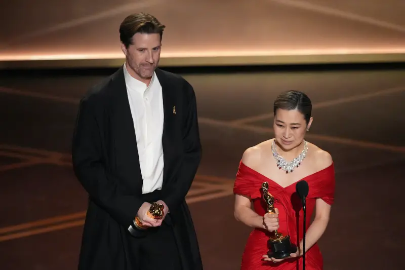 稍早,導演Maggie Kang上台領獎時,情緒激動、哽咽,向所有支持他們的粉絲道謝,她直言亞洲面孔在主流電影中一直很少見,「很抱歉讓大家這麼久才終於在電影裡看到我們」,希望下一代我們不再需要等待,最後導演也將獎項獻給韓國以及在世界各地的韓國人,短短一句話道出亞裔在好萊塢打拚的心聲。