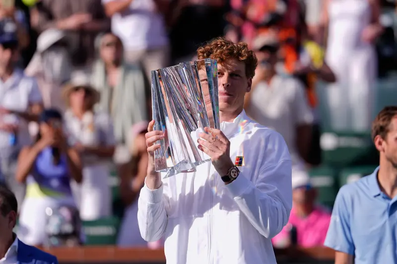 世界排名第2的義大利名將辛納(Jannik Sinner)今(15)日在印地安泉大師賽(BNP Paribas Open)決賽中,展現無堅不摧的發球統治力,以兩盤7:6(6)、7:6(4) 擊敗強敵梅德韋傑夫(Daniil Medvedev),奪下個人職業生涯首座印地安泉冠軍。這座獎盃不僅讓辛納達成「硬地大滿貫」壯舉,更讓他成為史上繼喬科維奇(Novak Djokovic)與費德勒(Roger Federer)後,第三位達成此神級紀錄的球員。