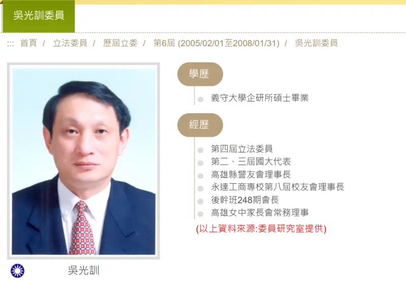 吳光訓曾擔任第4屆及第6屆國民黨立委,在股票市場綽號「