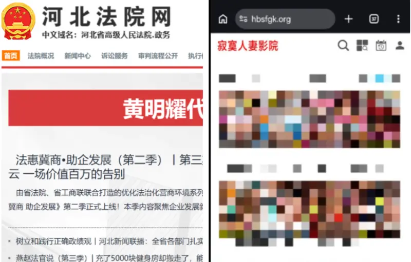 中國論壇《Linux Do》上有網友發現,這個河北省高級人民法院的「司法公開平台網站」網站,打開一看竟然變為成人網站,該網站原提供案件查詢、審判文書、網上立案、電子繳費等服務。