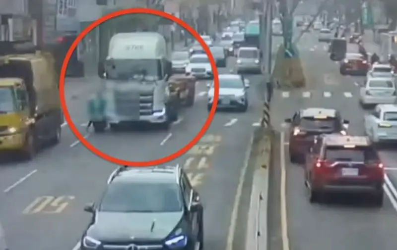 監視器畫面顯示,正值下午17時下班尖峰時間,中華路上車流繁忙,32歲李姓婦人駕駛機車乘載幼童,由八德區中華路直行往桃園方向行駛,疑似為了躲避垃圾車,與同向行駛曳引車發生碰撞,現場造成機車駕駛女性及1名女嬰現場OHCA送醫急救中,肇事車輛將移置保管,通知鑑識人員採證,詳細肇事原因尚待釐清。