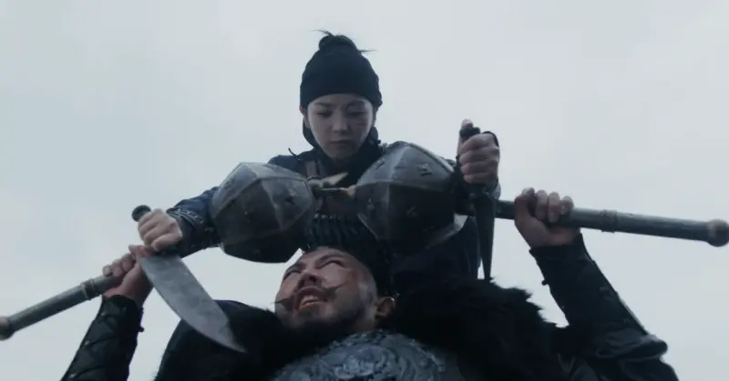 《逐玉》最新一集中,田曦薇飾演的殺豬娘子「樊長玉」因為擔心丈夫謝征死在戰場上,把他迷暈之後,自己穿上戰甲殺到前陣,面對敵人將軍拿著兩個大棒槌,她絲毫不害怕,試著進攻。
