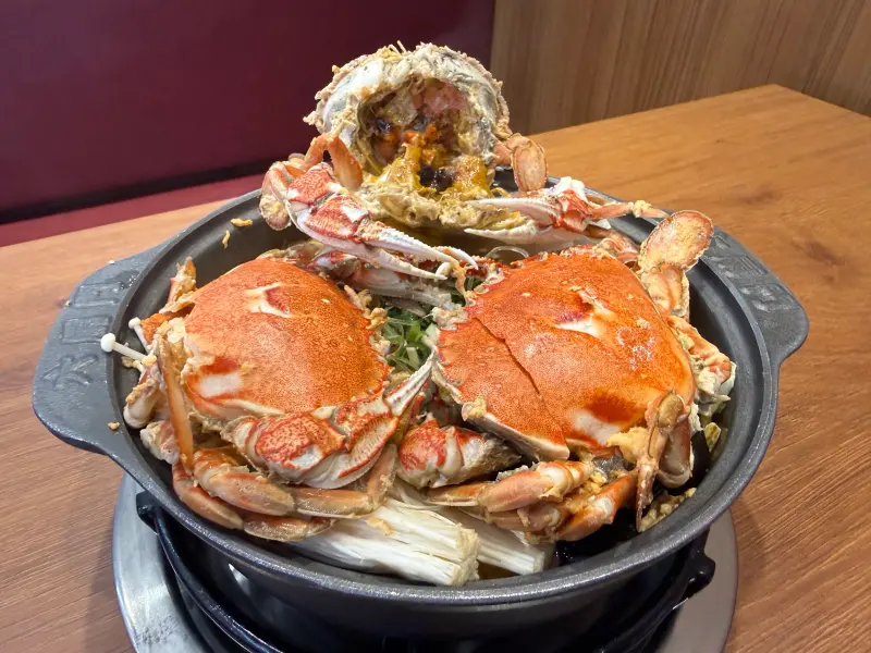 去年聯名繼光香香雞爽吃鹹酥雞火鍋的「六扇門」,今年又有最新力作!六扇門主打平價個人小火鍋,沒想到竟然可以吃到親民版痛風鍋!3月新品「三蟹叻沙粉絲煲」,湯底以南洋風味的叻沙、香濃椰漿為基底,融合多種辛香料熬製,並融合蟹膏入湯、豪邁放入三隻螃蟹,湯頭喝得到海味鮮甜與蟹膏濃香。