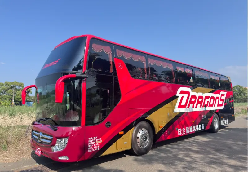 另一方面,味全龍全新塗裝球隊巴士亦正式亮相。嶄新的龍巴外觀融合球隊品牌視覺元素,整體設計更加鮮明且具識別度,不僅展現球隊形象,也象徵持續前進的精神。