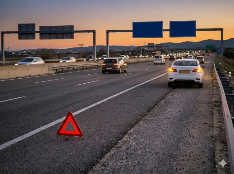 1. 移至路肩: 若車輛尚能滑行,應盡速移至路肩或安全區域,並遠離主車道。