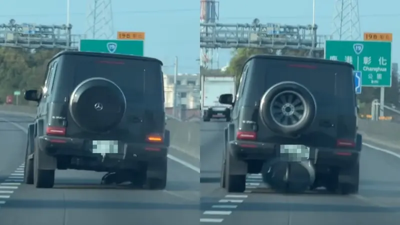 事發在18日下午16時55分,一輛黑色賓士越野車「大G」行經國道1號北向201.5公里彰化花壇路段時,右前輪因爆胎僅剩輪框,卻仍強行在路面摩擦並冒出陣陣白煙,甚至連車後的備胎蓋都因劇烈震動而噴飛脫落。目擊民眾發現該車不僅打著右轉方向燈,搖擺行駛,還差點與擦撞一旁經過的休旅車,最後就在眾人驚愕的目光下,緩慢從彰化交流道駛離。
