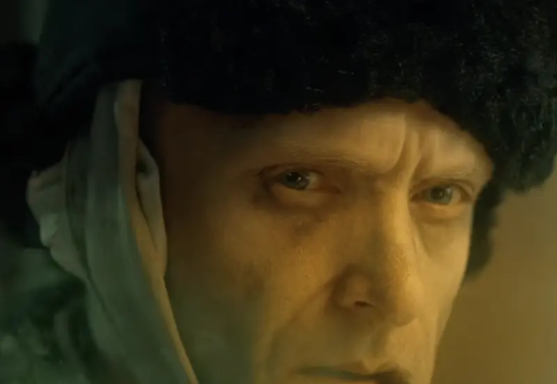 繼前一天重現愛德華·霍普(Edward Hopper)名畫《夜遊者》(Nighthawks)的場景後,今日釋出的段落同樣有濃厚的藝術氣息。畫面聚焦在一位神似荷蘭後印象派畫家梵谷的男子身上。他頭戴毛帽,耳朵裹著紗布,嘴裡叼著菸斗,眼神憂鬱地望向前方,完美還原了梵谷著名的《包著耳朵的自畫像》(Self-Portrait with Bandaged Ear)。