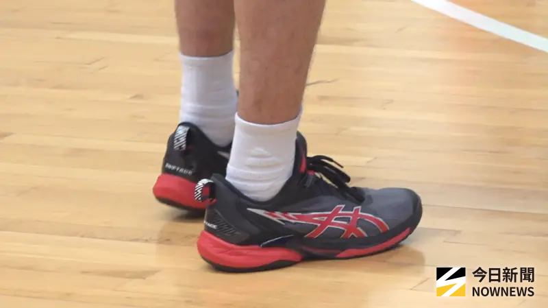 ▲葛拉漢特別挑一雙和球衣搭配的球鞋。(圖/吳忠育 攝)