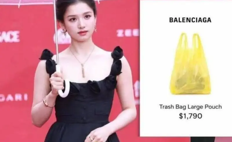 Threads上近日有網友發文,將張婧儀手拿黃色塑膠袋走紅毯的照片,與巴黎世家的商品照擺在一起,製作成梗圖,稱這個塑膠袋就是巴黎世家推出的最新包包,要價1790美金(約新台幣5.7萬元)。
