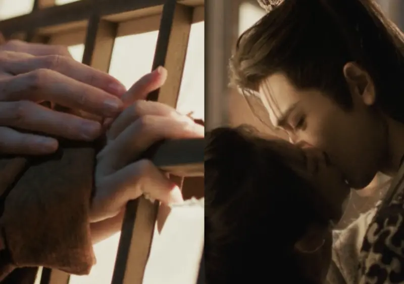 《逐玉》的導演曾慶傑真的太會啦!最新一集中,張凌赫飾演的武安侯「謝征」,將樊長玉(田曦薇 飾)帶離酒席,田曦薇脫口一句「侯爺」,讓張凌赫再度露出強制愛眼神,對田曦薇說「吻我」,不同於一般的吻戲只是兩人交纏,曾慶傑將畫面帶到演員的手,兩人倚靠在窗邊,田曦薇反手抓住窗框,張凌赫伸手緊握,兩人的熱情將藤紙都抓破了,藉由手部特寫,來傳遞他們之間的激情。