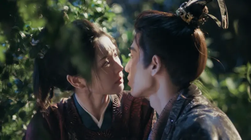 張凌赫把頭埋在她的脖子之間,來回親吻,並深情告白,「我真的喜歡妳。」此時田曦薇只緊張他又受傷,外面還有追兵,張凌赫一直吵她,讓她分心,只好出手將他打暈,畫面意外可愛。