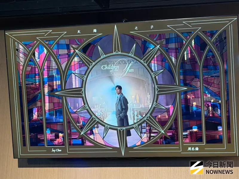 走進全黑的TITAN影廳內,巨型銀幕上正投影著《太陽之子》的絕美主視覺。只見周杰倫身穿長版大衣,站在充滿神聖氛圍的教堂中央,背後是絢麗的彩繪玻璃與從天灑落的光束;畫面外圍更以極具幾何設計感的太陽芒星圖騰將其環繞,視覺風格磅礴大氣,宛如一部好萊塢史詩電影的海報,讓人更加期待破億神作將帶來何種視覺震撼。