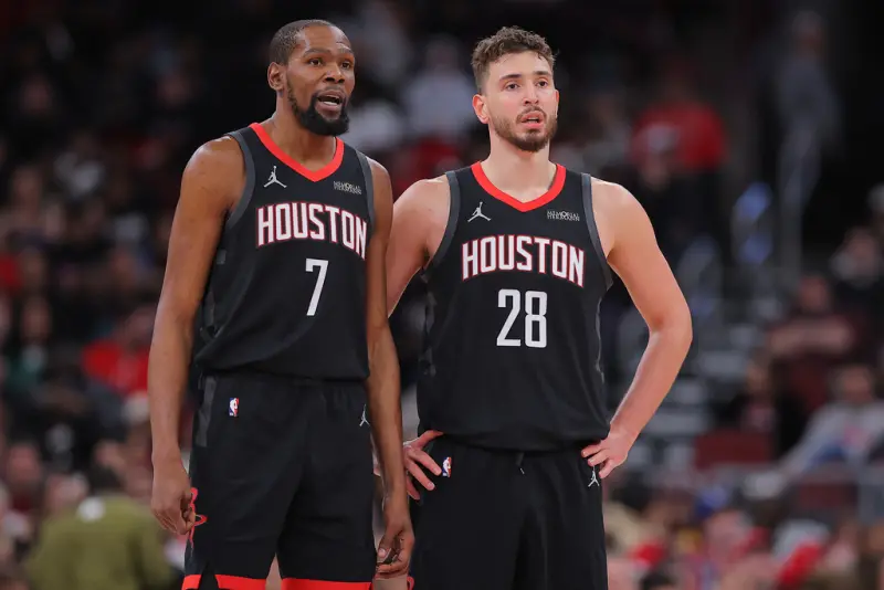 KD本季加入火箭後,數據上維持過往水準,但球隊缺乏具經驗的控球後衛成為硬傷,與申京、史密斯(Jabari Smith Jr.)、湯普森(Amen Thompson)等人雖仍打出西區第4佳績,但進攻方面不甚穩定,全隊決勝關頭幾乎只能依賴37歲的KD單打。