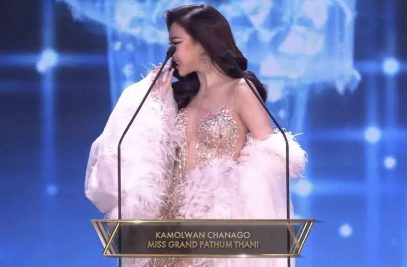 直播畫面來看,甘末宛(Kamolwan Chanago)穿著亮眼禮服登場,面對鏡頭進行開場介紹時,上排牙齒貼片突然脫落,讓她講話一度受到影響,畫面也讓不少觀眾當場看傻。這段突發狀況發生在3月25日的Miss Grand Thailand 2026預賽,因為直播播出後迅速被大量轉傳,很快就在泰國與海外社群引發討論。