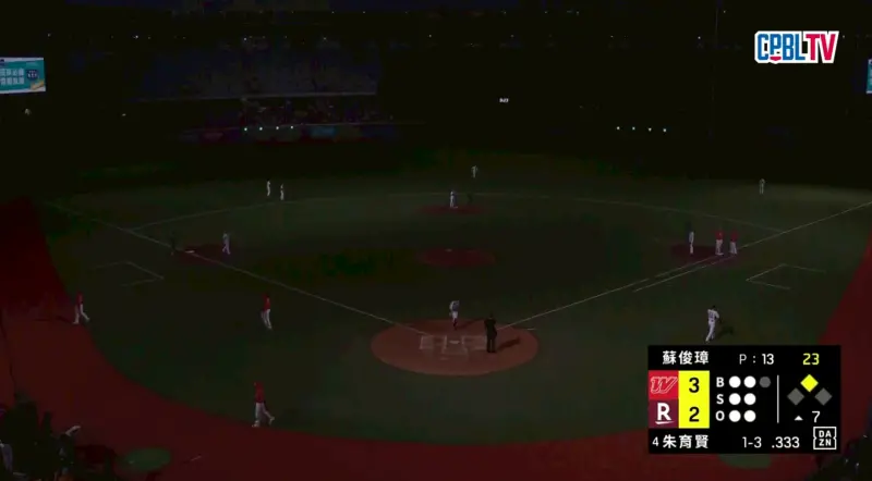 更誇張的是,經過數秒後燈光重新啟動,只見樂天桃猿防守球員都還在場上相望,不太清楚現在是什麼狀況,主審也露出不解表情,後續經確認才宣告該半局結束。