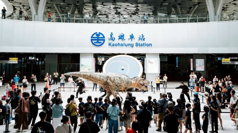 ▲由日本擬真恐龍團隊DINO-A-LIVE帶來栩栩如生的恐龍現身高雄火車站。(圖/高市府教育局提供) 活動中,擬真恐龍在車站大廳與戶外空間驚喜登場,逼真的動作與聲響,讓不少民眾直呼「真的會動!」、「像走進史前生物世界!」。許多小朋友及家長更是又驚又喜,紛紛拿起手機拍照合影,留下難得回憶,也為即將到來的兒童節活動提前暖身。