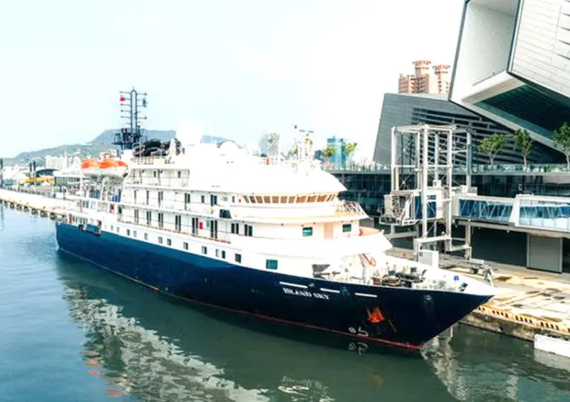 島嶼天空號(ISLAND SKY)郵輪是115年高雄港國際郵輪預報中噸位最小的郵輪,小型郵輪特色在於具備靈活的航行優勢,相較大型郵輪可停靠更多元港口,此次航程預計串聯高雄港及澎湖港,帶領旅客探索台灣本島及離島的自然景觀與人文風貌,並預計於6月23日再次造訪高雄港。