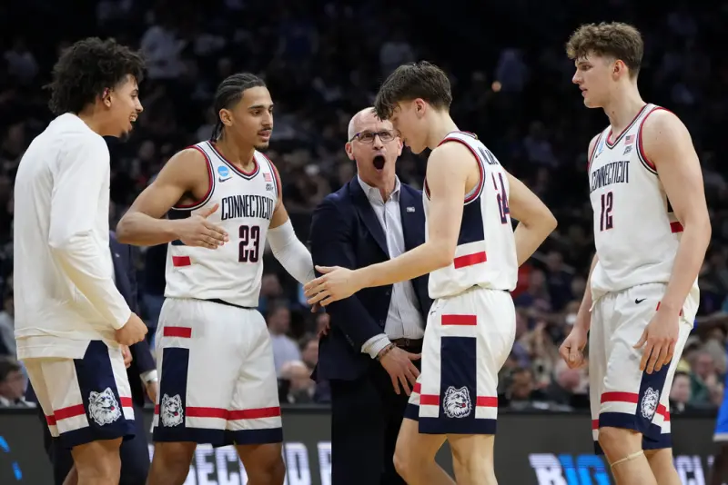 相較於密西根的一路平坦,康乃狄克大學的晉級之路則充滿韌性。他們在八強賽面對杜克大學時,靠著菜鳥射手穆林斯(Braylon Mullins)在比賽終了前0.4秒的神奇三分球逆轉險勝。
