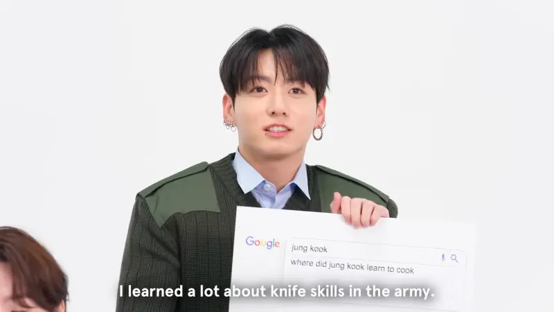BTS接受WIRED訪談回答問題,大家都好奇柾國最近為何愛下廚,他就透露當兵時學會刀工,「我本來就很喜歡一個人做點什麼,平常也很愛邊看影片邊下廚。」SUGA跟JIN就說柾國還親手做了200個國際爆紅的甜點「杜拜巧克力Q餅」給工作人員吃,其他成員聽聞嚇到,還問「為什麼我沒拿到!」沒吃到「柾國牌杜拜QQ餅乾」感到很可惜。