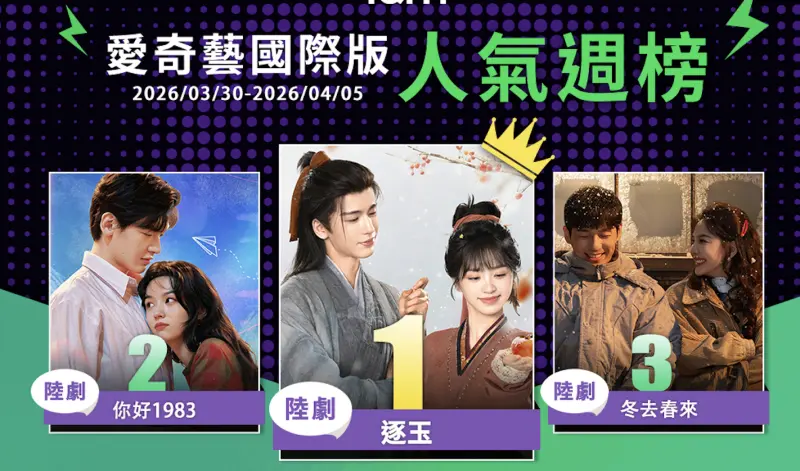 愛奇藝《逐玉》攻佔冠軍 《愛你》再度翻紅