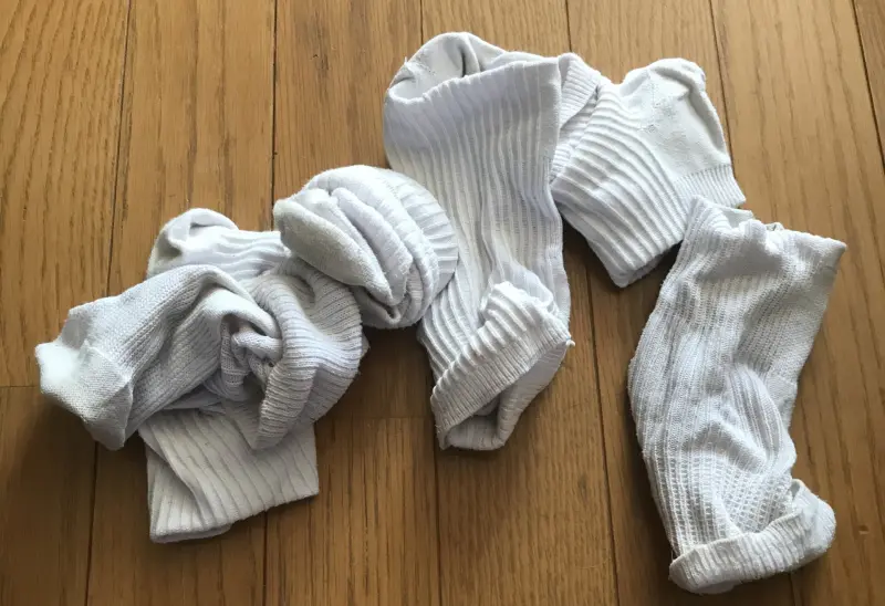 襪子材質較厚,比較難完全乾燥,魚漿夫婦也提供晾襪子方法,有些人會用洗衣夾夾住襪子腳尖的部分晾曬,但其實這樣比較不容易乾,也會讓襪子更容易壞,因為洗完衣服之後,水分會順著地心引力往下流,水就會聚集在襪口的部分。