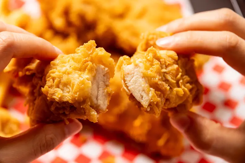 肯德基全新推出的「爆脆無骨雞腿霸」,主打將整塊雞腿肉去骨後、外層裹上爆脆酥炸的外皮,標榜是有別於現有雞柳條的主餐新品。