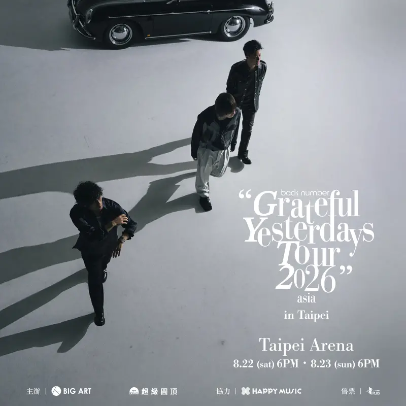 今年,back number將迎來成軍以來最大規模的巡演計畫,預計自5月起展開首次五大體育場巡演《Grateful Yesterdays Tour 2026》,要於日本全國5地舉辦共9場演出,預計動員人數超過50萬人。本次台北演唱會《back number “Grateful Yesterdays Tour 2026” in Taipei》,作為值得紀念的海外里程碑,將帶來他們最具代表性的經典曲目與進化後的現場演出。