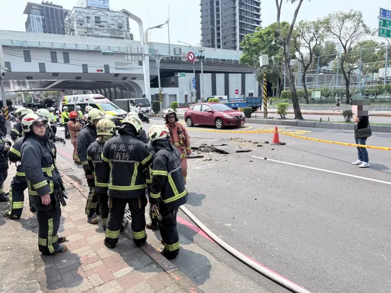 另現場封閉縣民大道的中間及外側車道,目前僅內側車道可通行,並由員警在場管制疏導。目前計有海山分局、養工處、消防分隊、區公所、新海瓦斯公司、台灣電力公司及自來水公司等人員到場檢測。此外,經新海瓦斯公司初步調查,該路段沒有地下天然氣管線;台電人員表示,疑為管線設備發生異狀所致,現已盡速派員到場維修。