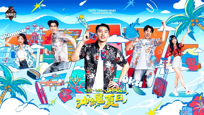 本次主題日視覺特別安排陳文宏、劉彥廷、魏芃禾與Taishin Wonders柳柳、品涵穿上沖繩花襯衫入鏡,引領大家進入這段沖繩主題旅程,戰友們進場完成指定任務還可抽「JTA日本越洋航空台北-沖繩來回機票」,邀請戰友把握最後主場週末,感受充滿沖繩風情的夏日節奏。
