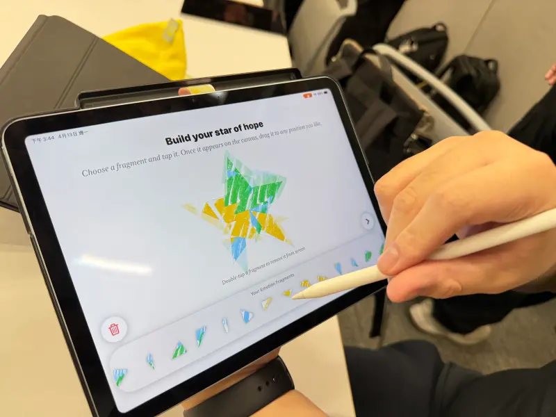 榮獲「傑出獲獎者」殊榮的傅羿綸,目前就讀於台北護理健康大學資管系二年級。當初為了以優惠價格取得蘋果開發者會籍而決定參賽,他所開發的App《ReMinder》靈感來自大一時參加學輔中心的香氛蠟燭手作課。傅羿綸將課程中用蠟筆在紙上自由揮灑再撕碎拼貼的過程搬上平板,希望能為忙碌的使用者提供釋放壓力的療癒體驗。