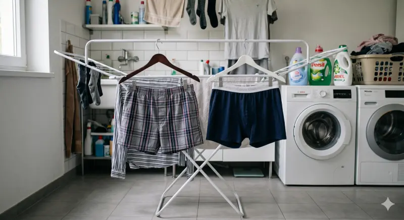 貼身衣物每天都要清洗,但你知道正確的晾法嗎?台中知名「萬秀洗衣店」第三代張瑞夫(瑞夫)日前在社群平台分享三角內褲的晾法,得到不小迴響,近日他又分享男生常穿的四角內褲曬法,讓內褲不容易變形,也不會讓襠布變硬不舒適。特力屋也針對不同族群需求,推薦3大類型曬衣架。