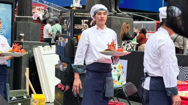 紐約地標時代廣場昨(17)日出現罕見場面,一場結合台灣辦桌文化的婚禮活動在紐約時代廣場登場,引發大批民眾圍觀,原先不少遊客原本只是路過,卻被現場熱鬧氛圍吸引駐足,甚至拿出手機記錄這難得一見的畫面,這場在紐約時代廣場舉辦的台式婚宴話題,不到一天內疚迅速在社群發酵。值得一提的是,負責此次宴會的,竟然是藝人藍正龍、隋棠,以及剛考取中餐執照的百萬YTR千千,讓不少粉絲直呼驚訝。