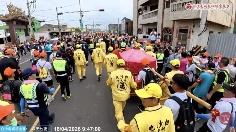 兩者最近距離一度僅剩 50 公尺,但「粉紅超跑」仍加速北上,並未踏入天后宮大門。這