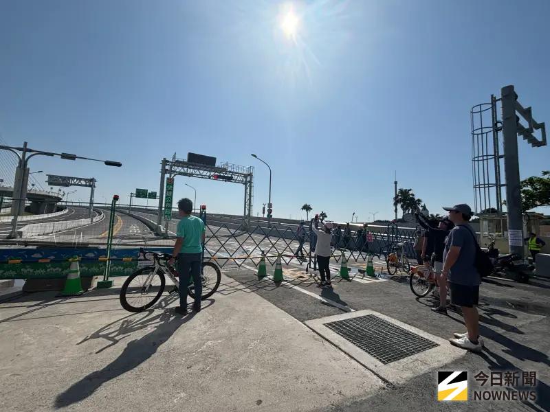 新北世界級地標淡江大橋將於 5 月 12 日正式通車。昨(18)日路跑活動圓滿落幕後,今(19)日輪到自行車活動登場,清晨共有 2500 名車友騎上橋,搶先體驗壯闊的河岸風光。不過到了下午卻發生一段小插曲,有位阿伯騎著機車試圖硬闖淡江大橋,隨即遭現場警方攔下,雙方甚至爆發口角衝突。